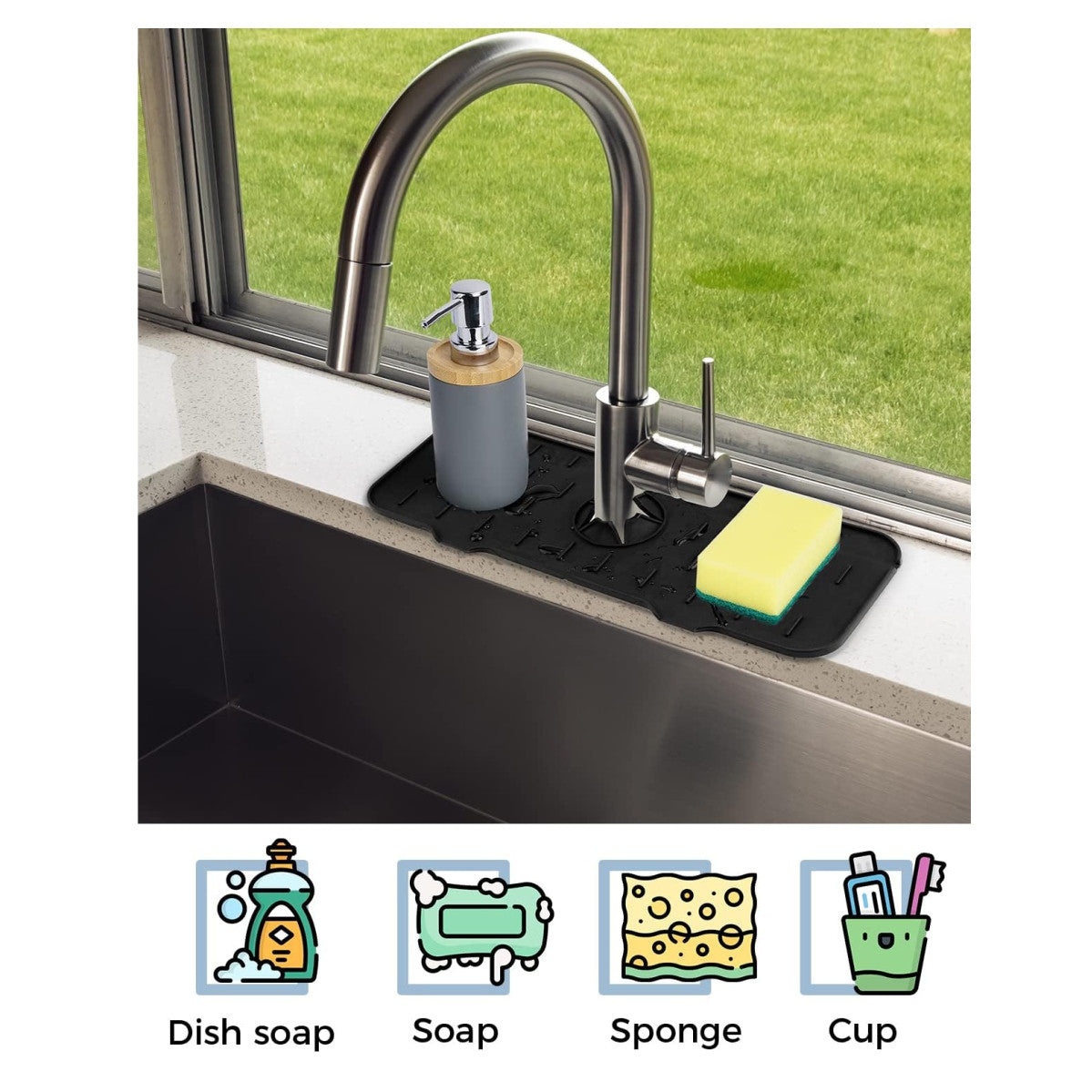 Convierte tu fregadero en un espacio más limpio y organizado con esta alfombrilla multifuncional de silicona. Perfecta para colocar esponjas, cepillos, tazas, dispensadores de jabón o desinfectante de manos, manteniéndolos siempre secos y al alcance.