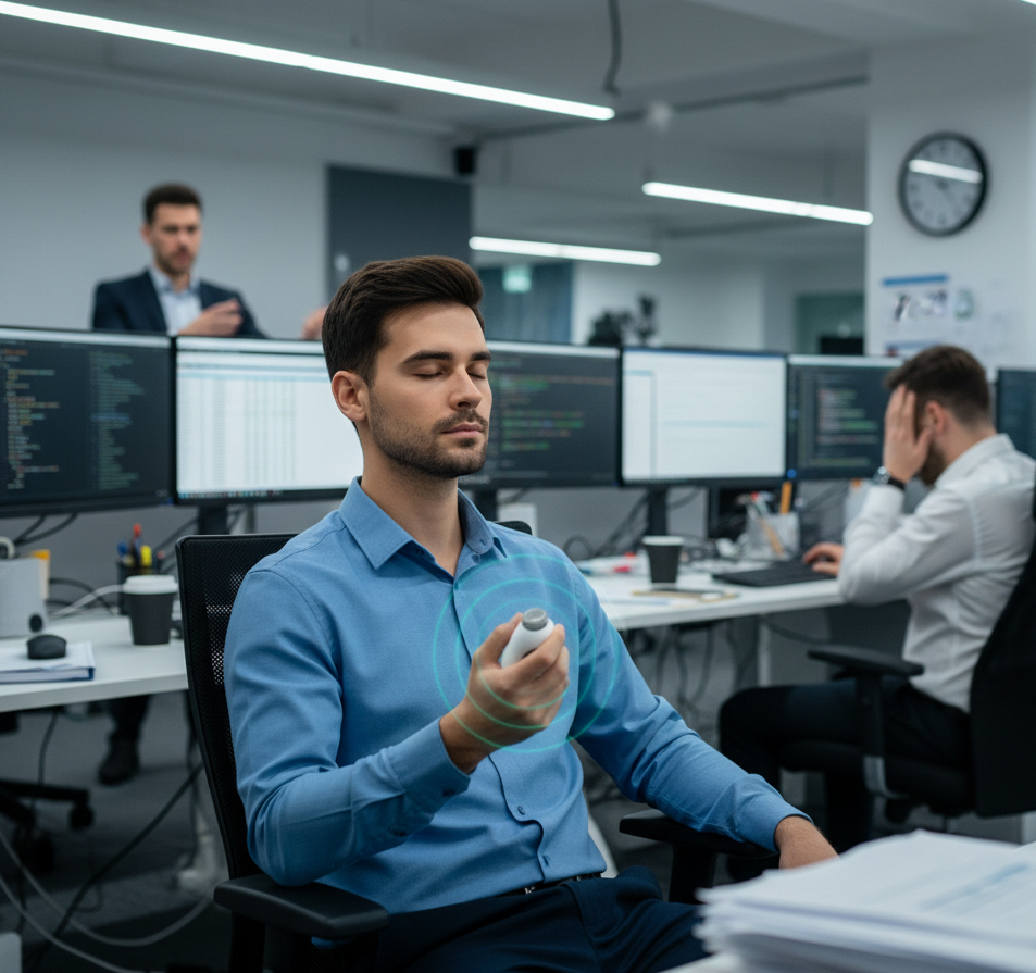 NeuroSleep™ utiliza suaves impulsos que relajan tu mente y cuerpo en minutos. Disfruta noches profundas sin medicamentos ni efectos secundarios.